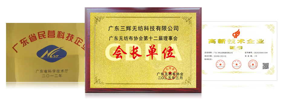 三輝無紡創(chuàng)始人楊長輝先生是廣東無紡布協(xié)會(huì)會(huì)長,同時(shí)擔(dān)任亞洲非織造材料協(xié)會(huì)理事,在他的帶領(lǐng)下,三輝無紡多年以來榮膺各類重點(diǎn)單位。